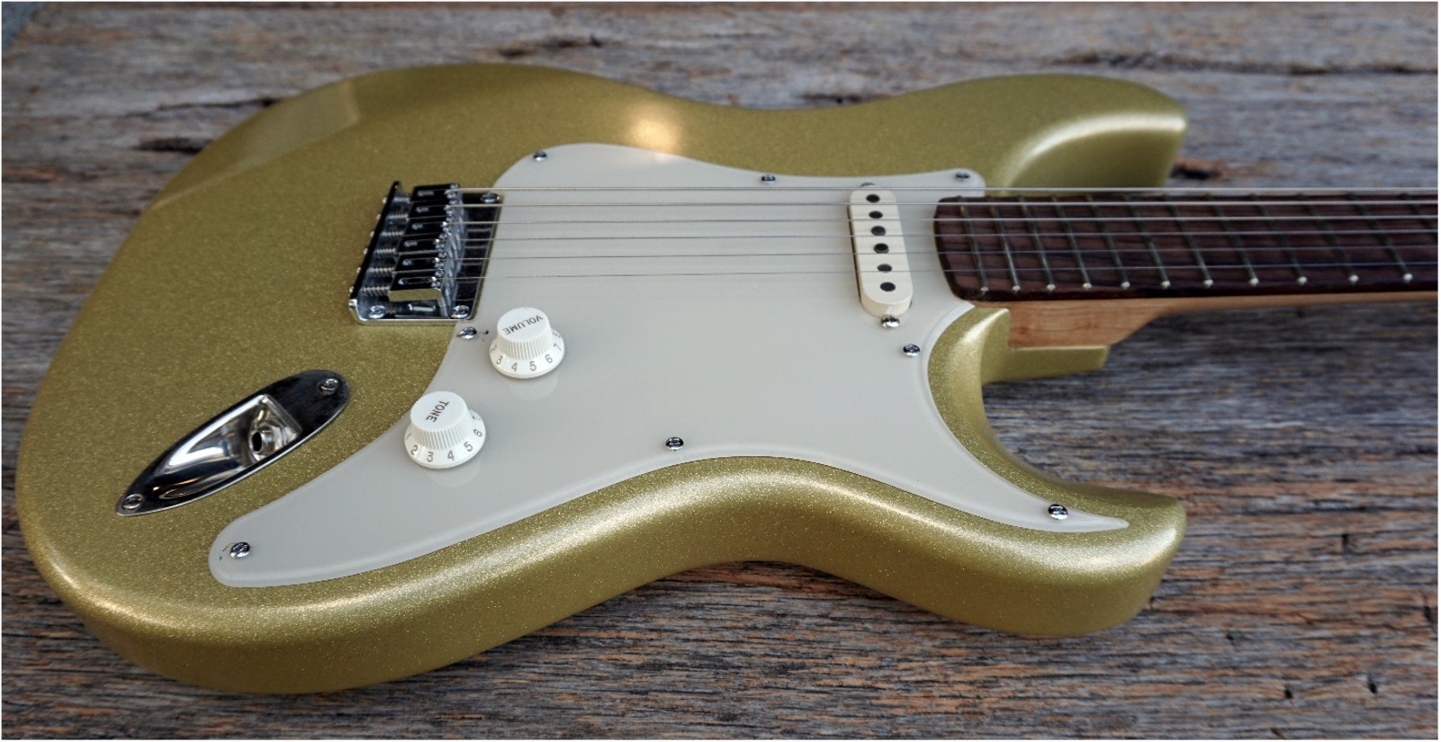 - Tuners: Gotoh with large Schaller buttons are cheap and work great, come in nickel, black and gold @ Philadelphia Luthier Tools or StewMac. Budget open tuners (as shown on the gold guitars above) are okay.
